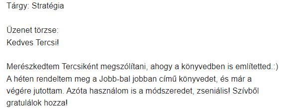 Ha nem tetszik a könyv és élni szeretnék a pénz visszafizetési garanciával, csak írj egy levelet az info@weitzterez.hu e-mail címre. A levélben hivatkozz a megrendelés számára, hogy stornózni tudjuk a számládat.